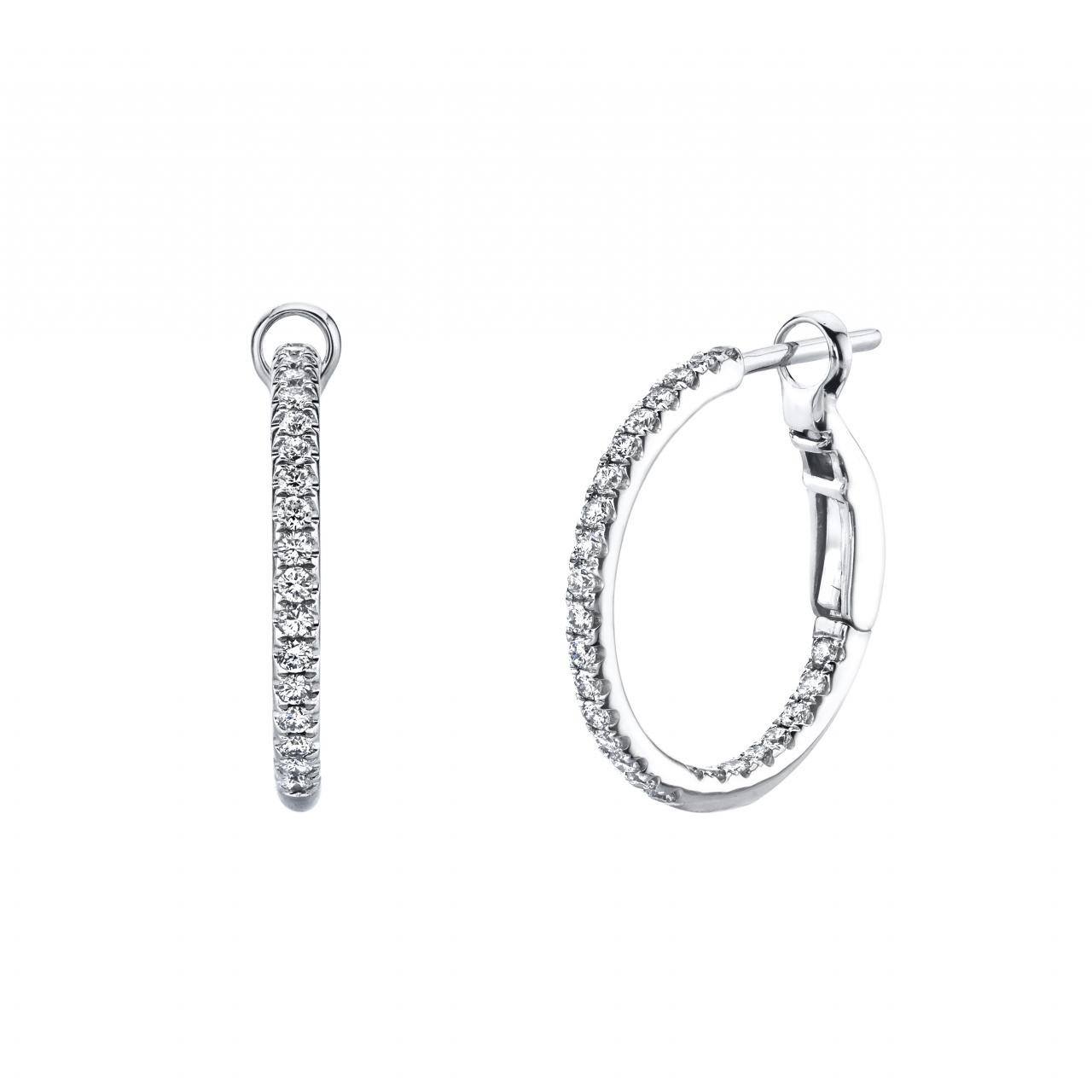 A pair of round micro wire/set diamond hoop earrings, set in 18K white gold.
