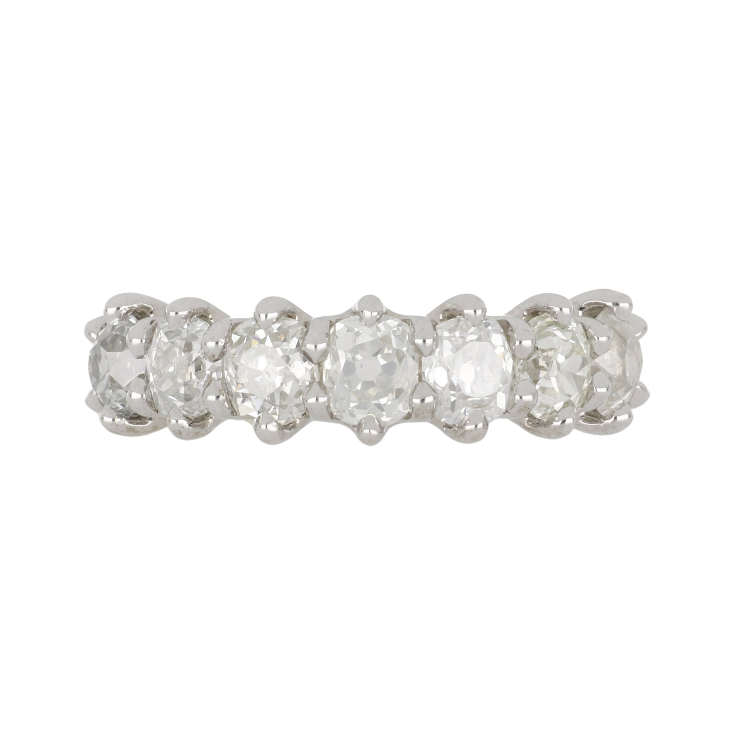 An Old Mine-cut diamond half band, set in 18K white gold.