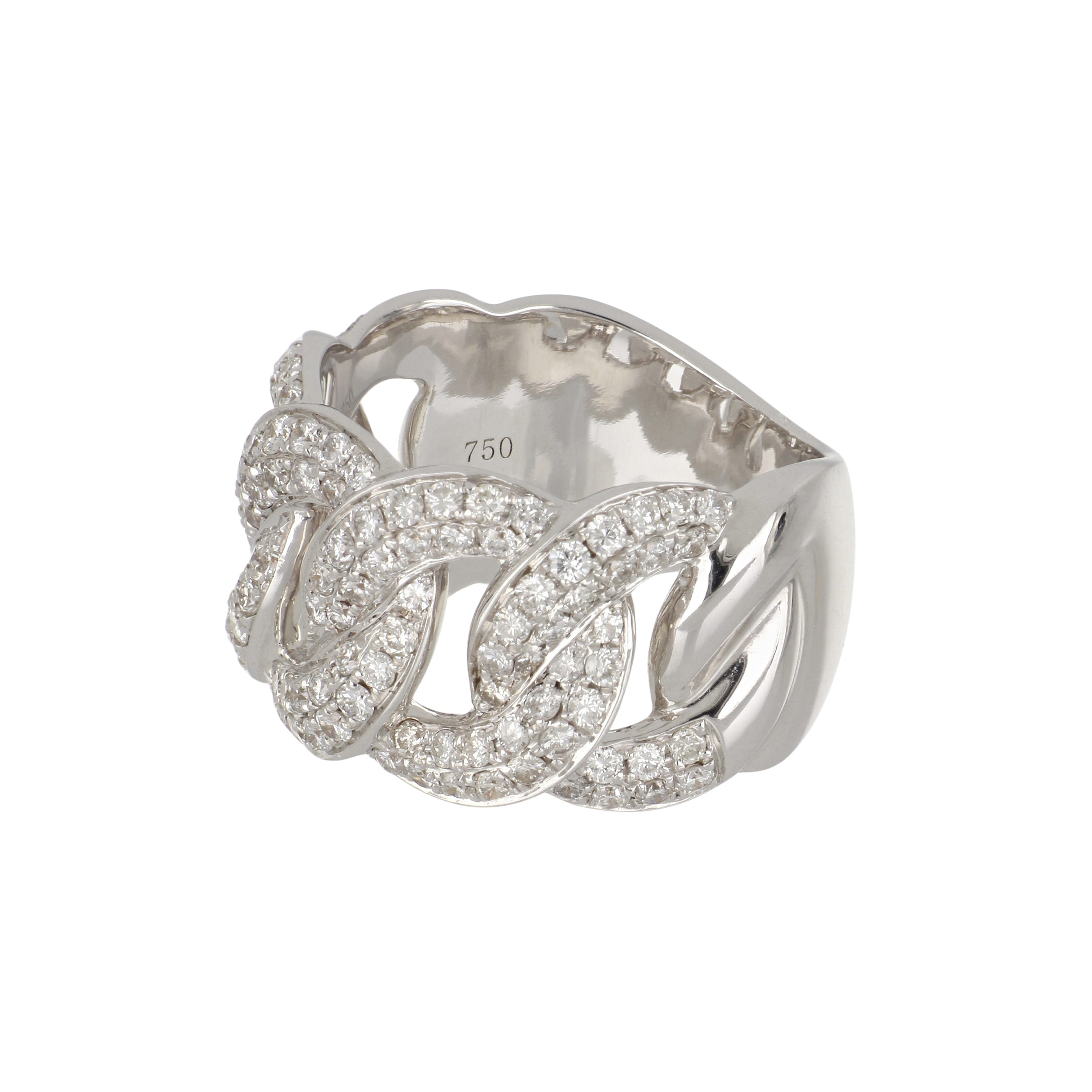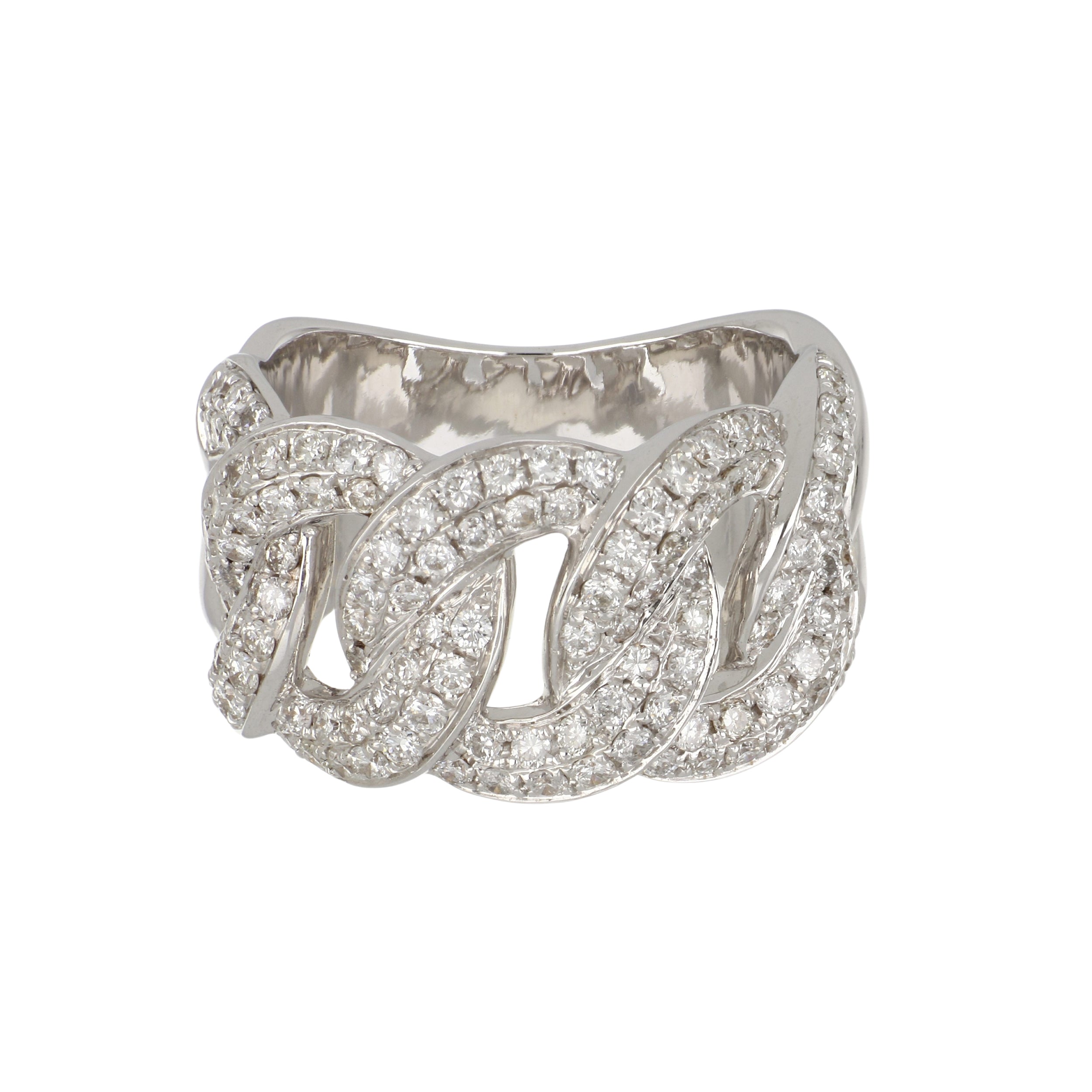 A wide curb link pave round brilliant-cut diamond band, set in 18K white gold.
