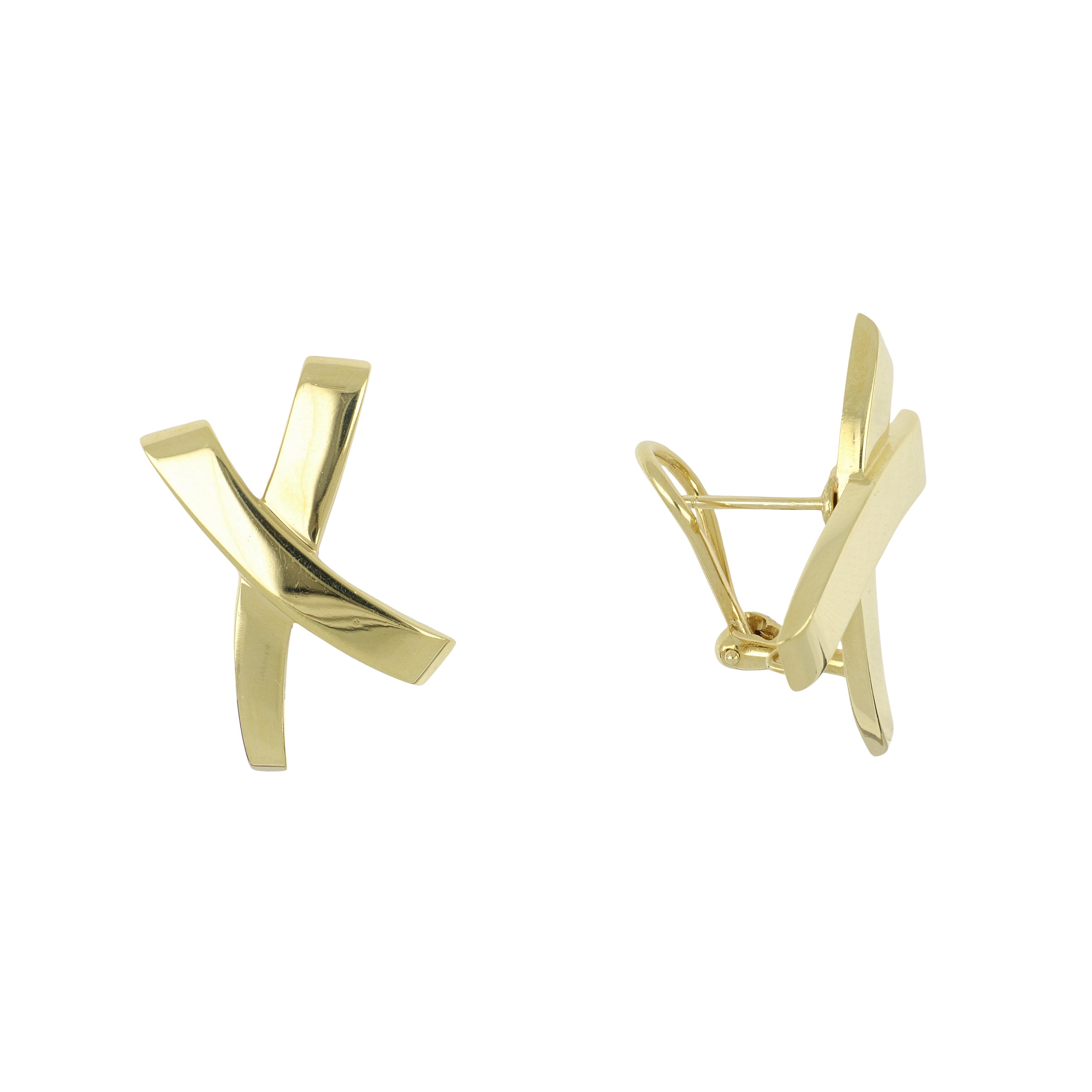 A pair of vintage Tiffany & Co. Paloma Picasso "Graffiti X" earrings in 18K yellow gold. Circa 1980.