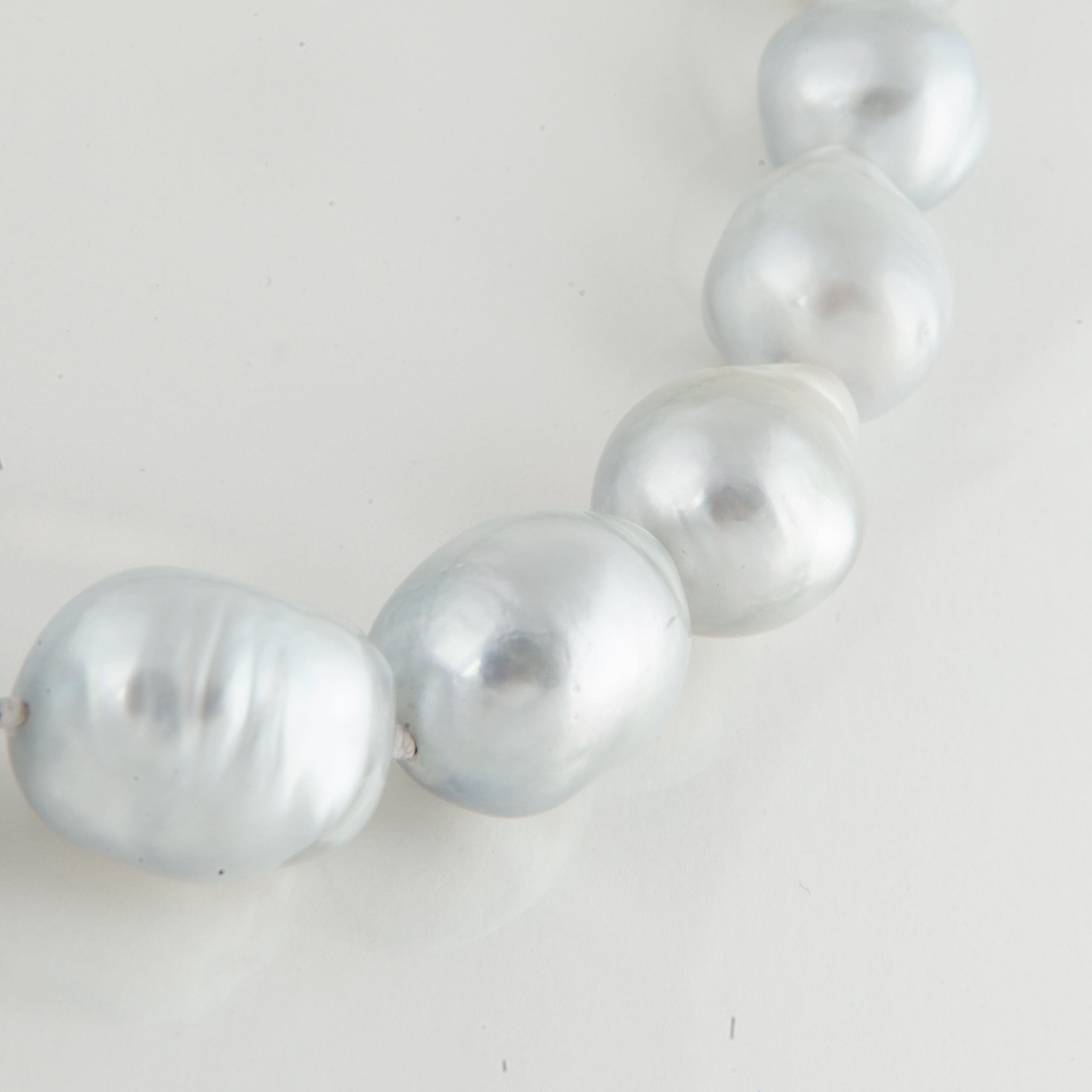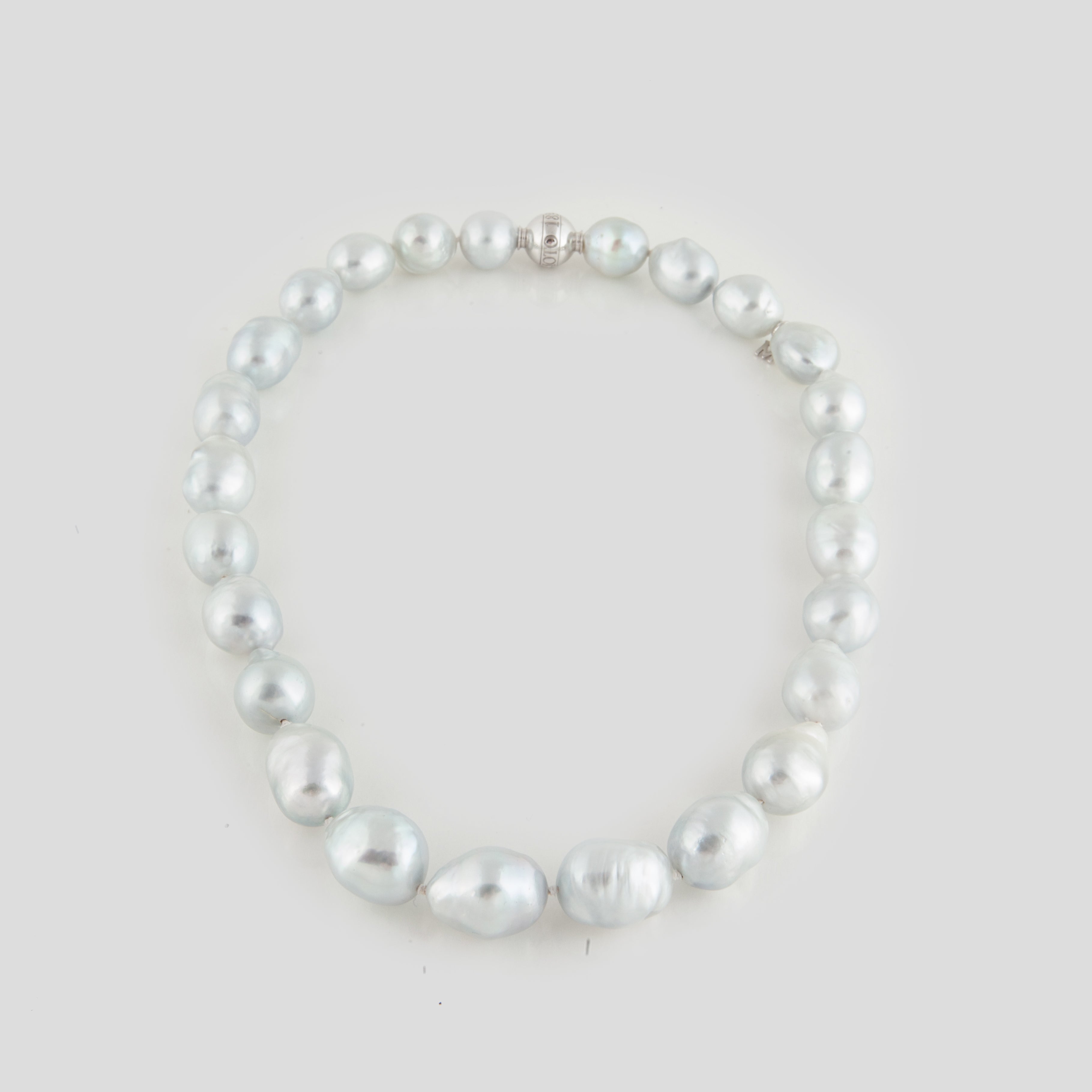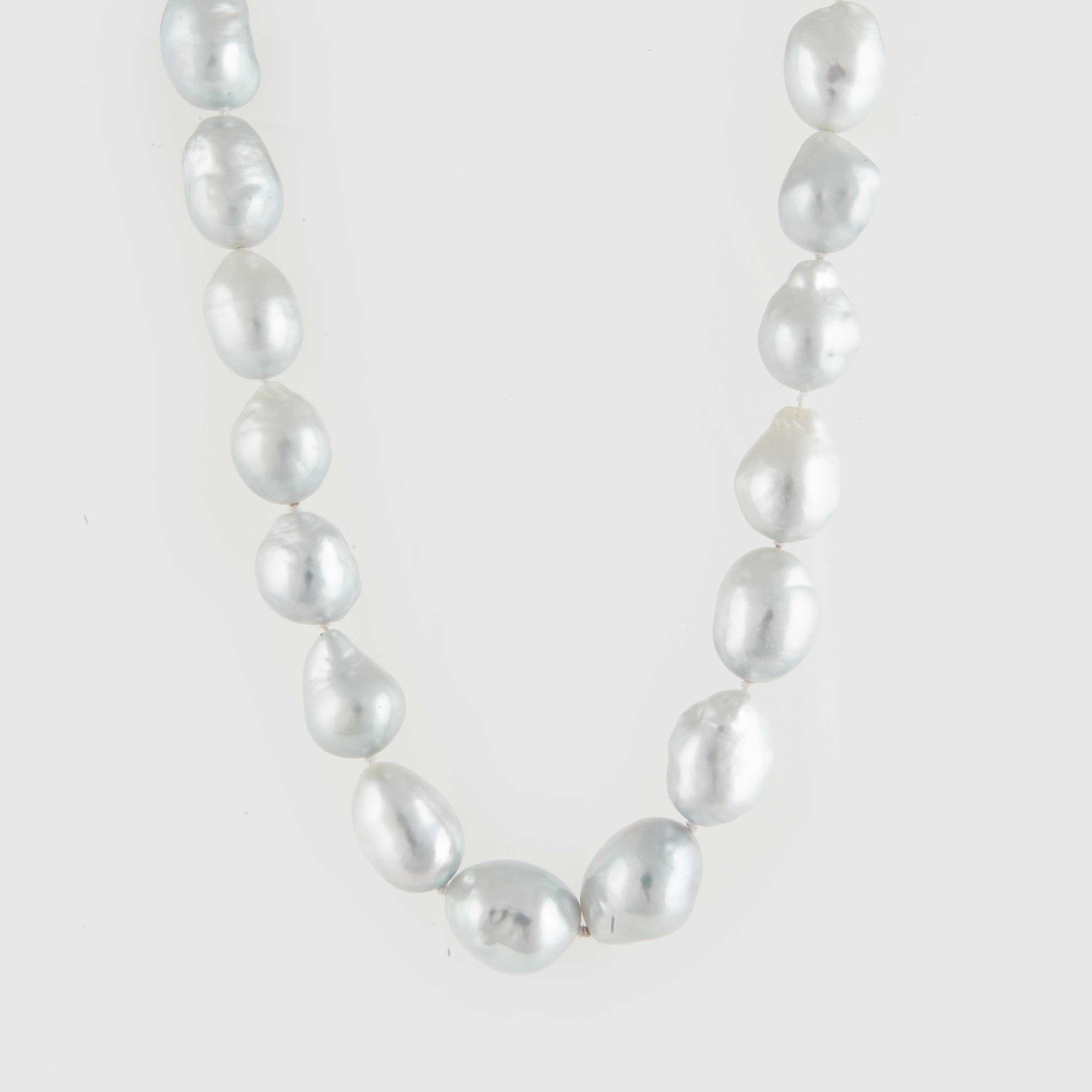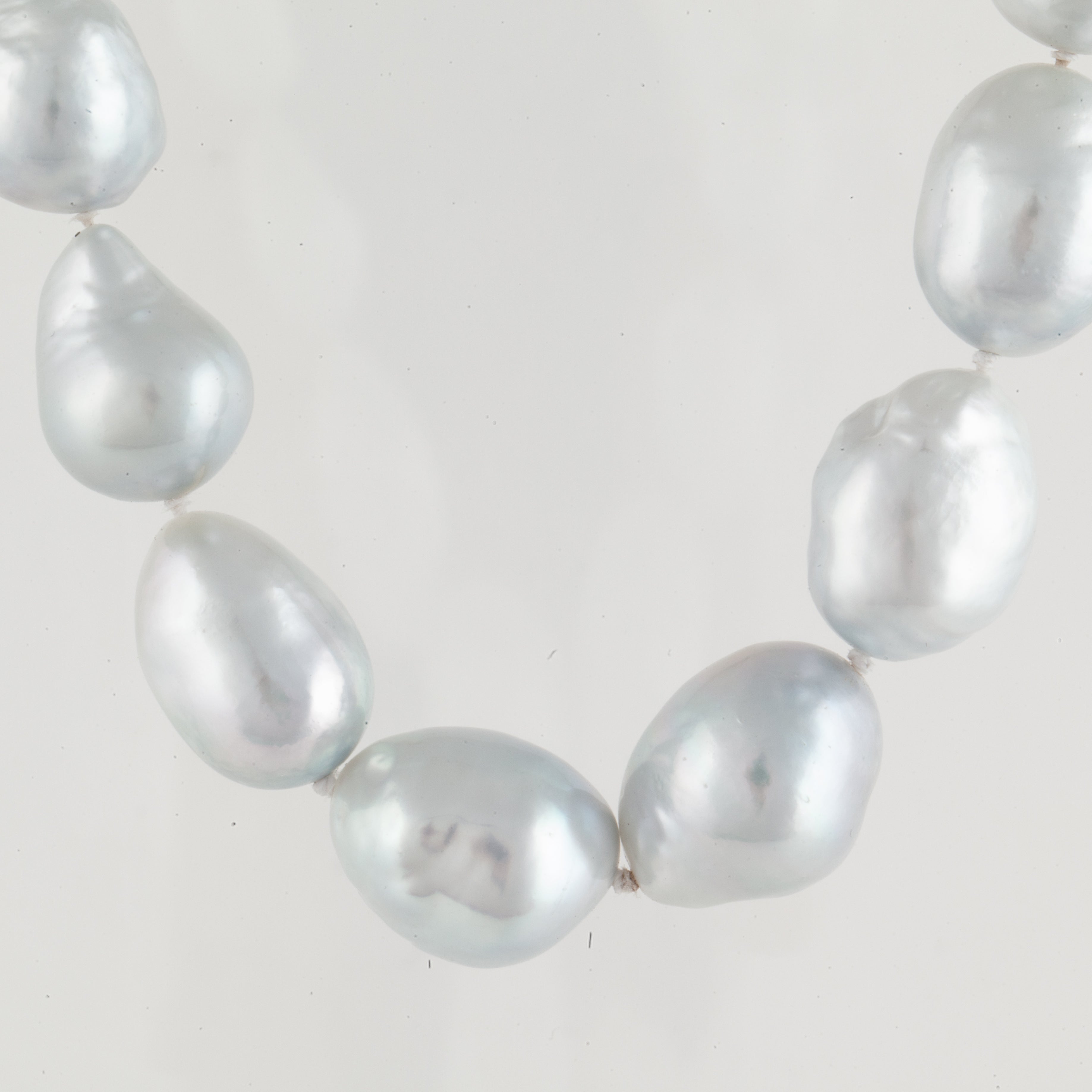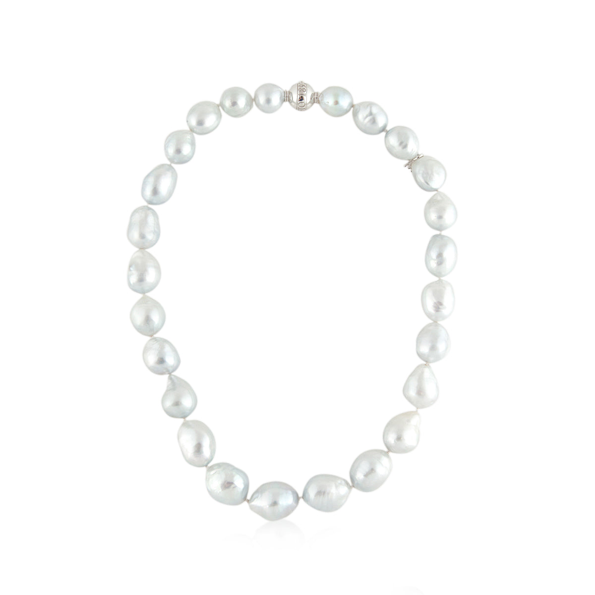 An estate Mikimoto light grey cultured baroque pearl necklace with an 18K white gold clasp.