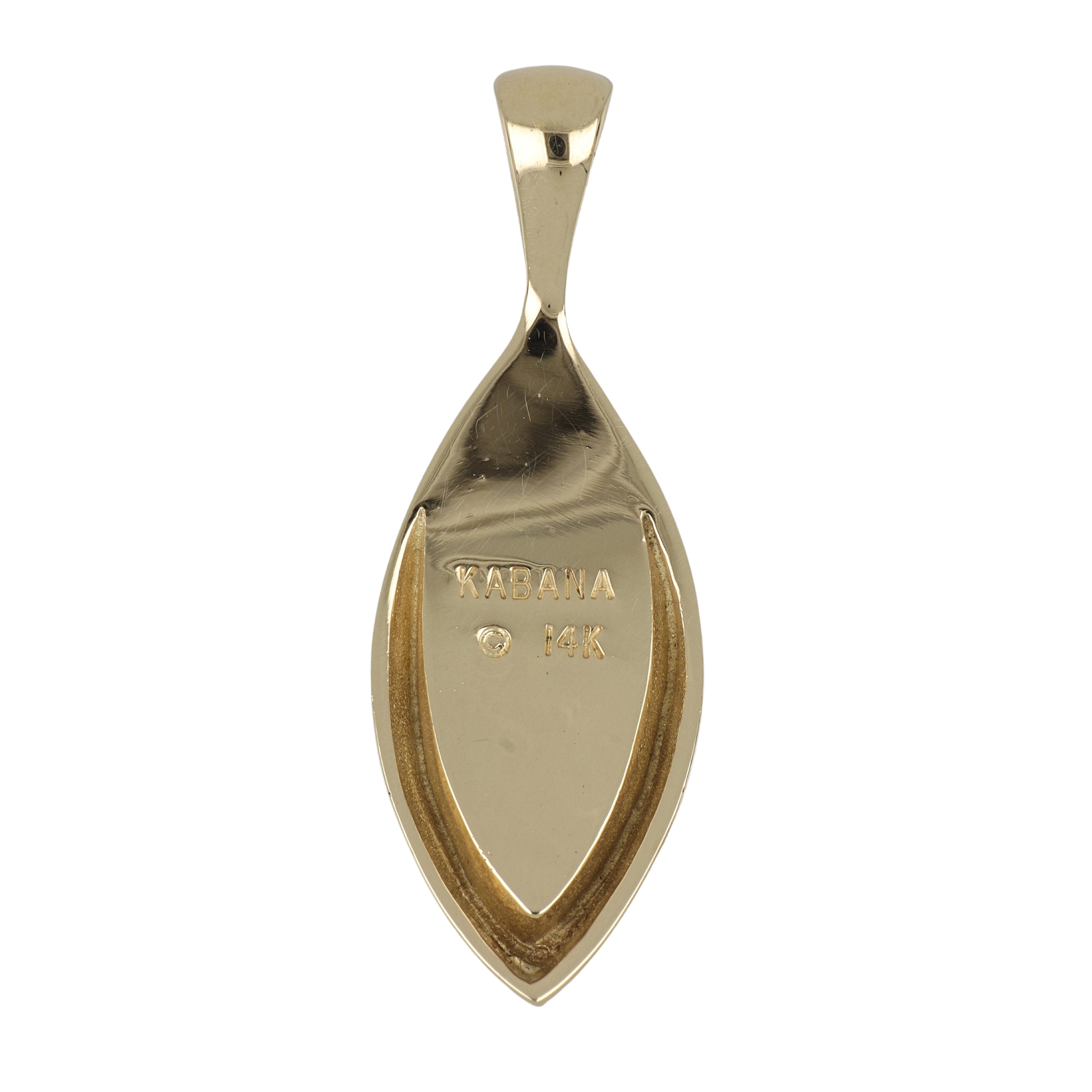 An estate modern, Kabana drop pendant featuring mother of pearl inlay in 14k yellow gold. Circa 2010.