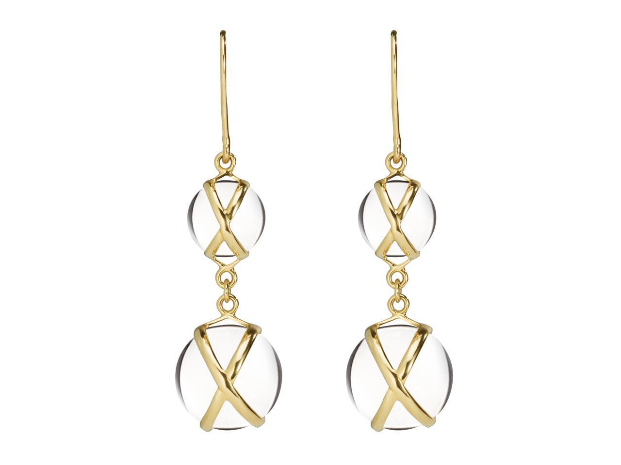 A pair of L. Klein Prisma rock crystal quartz double drop earrings, set in 18K yellow gold.Official Retailer4 rock crystals Length: 2 inch
