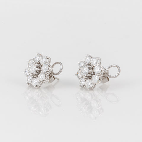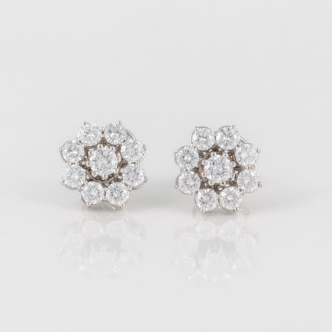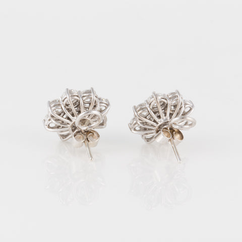 Mid-Century 18K White Gold Diamond Cluster Stud Earrings