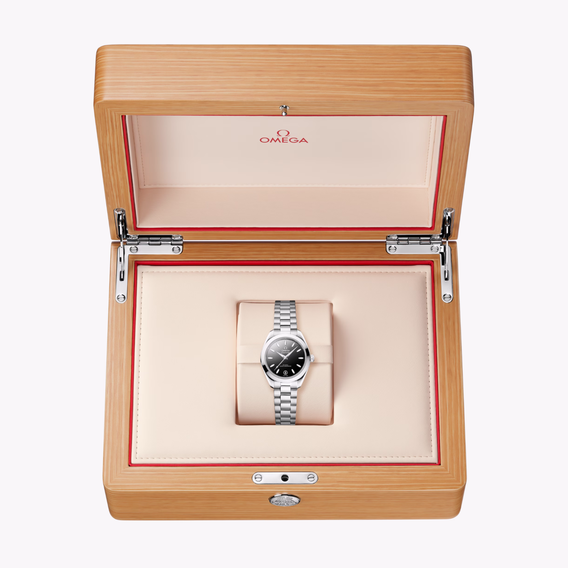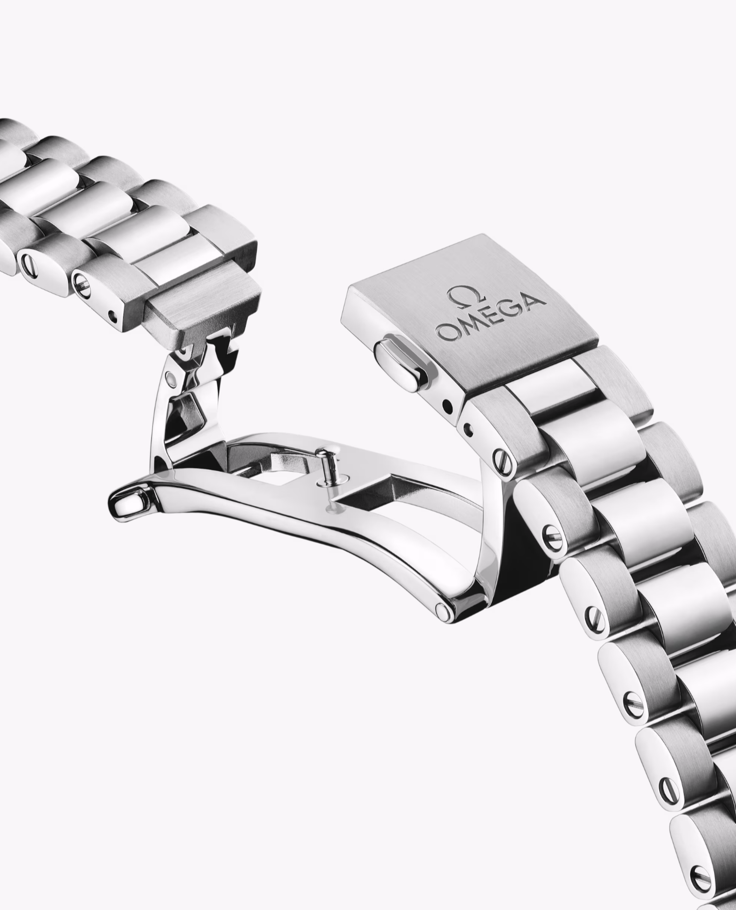 The watch is presented on an integrated stainless steel bracelet with beautifully rounded polished-brushed links, a foldover butterfly clasp, and OMEGA’s easy comfort-adjustment system.