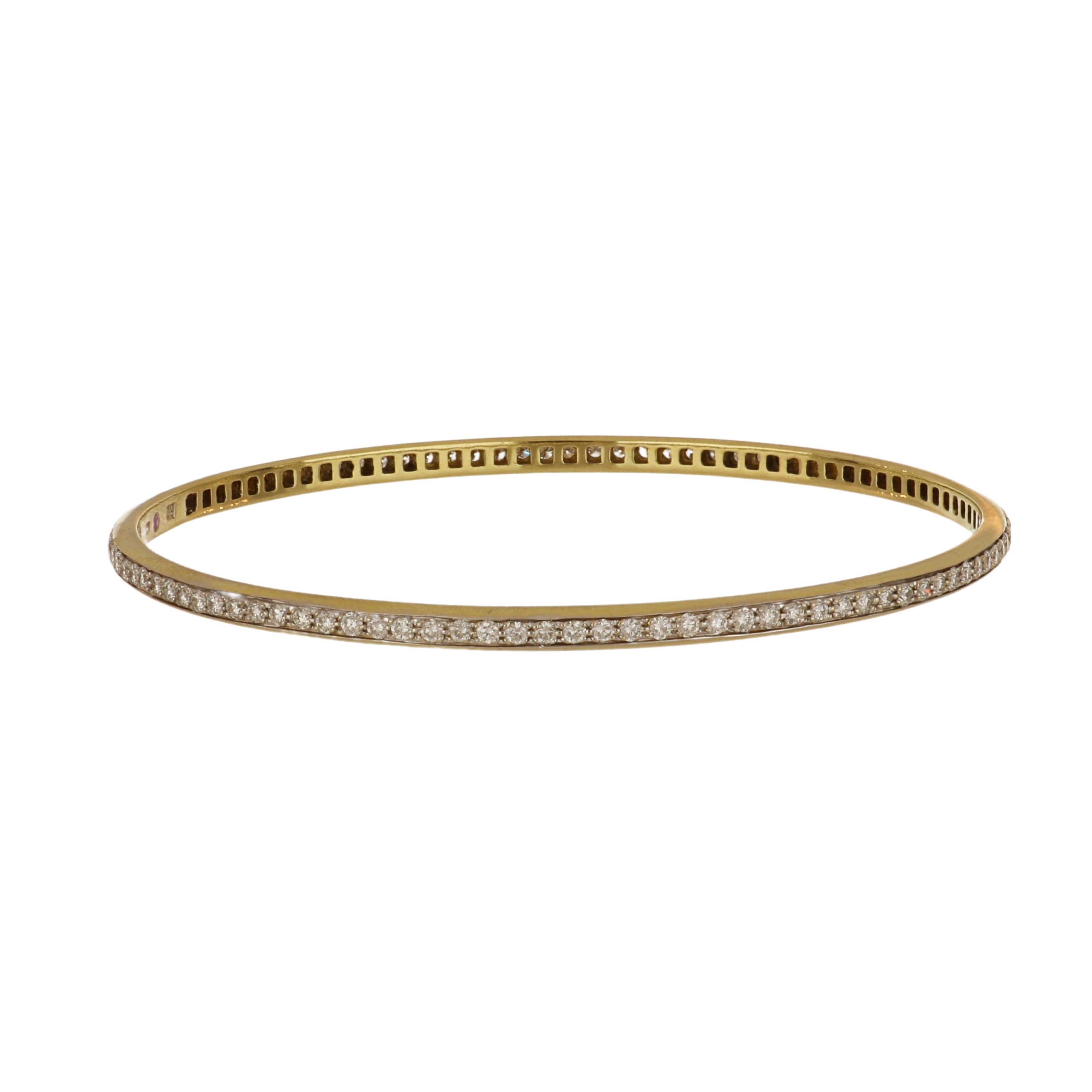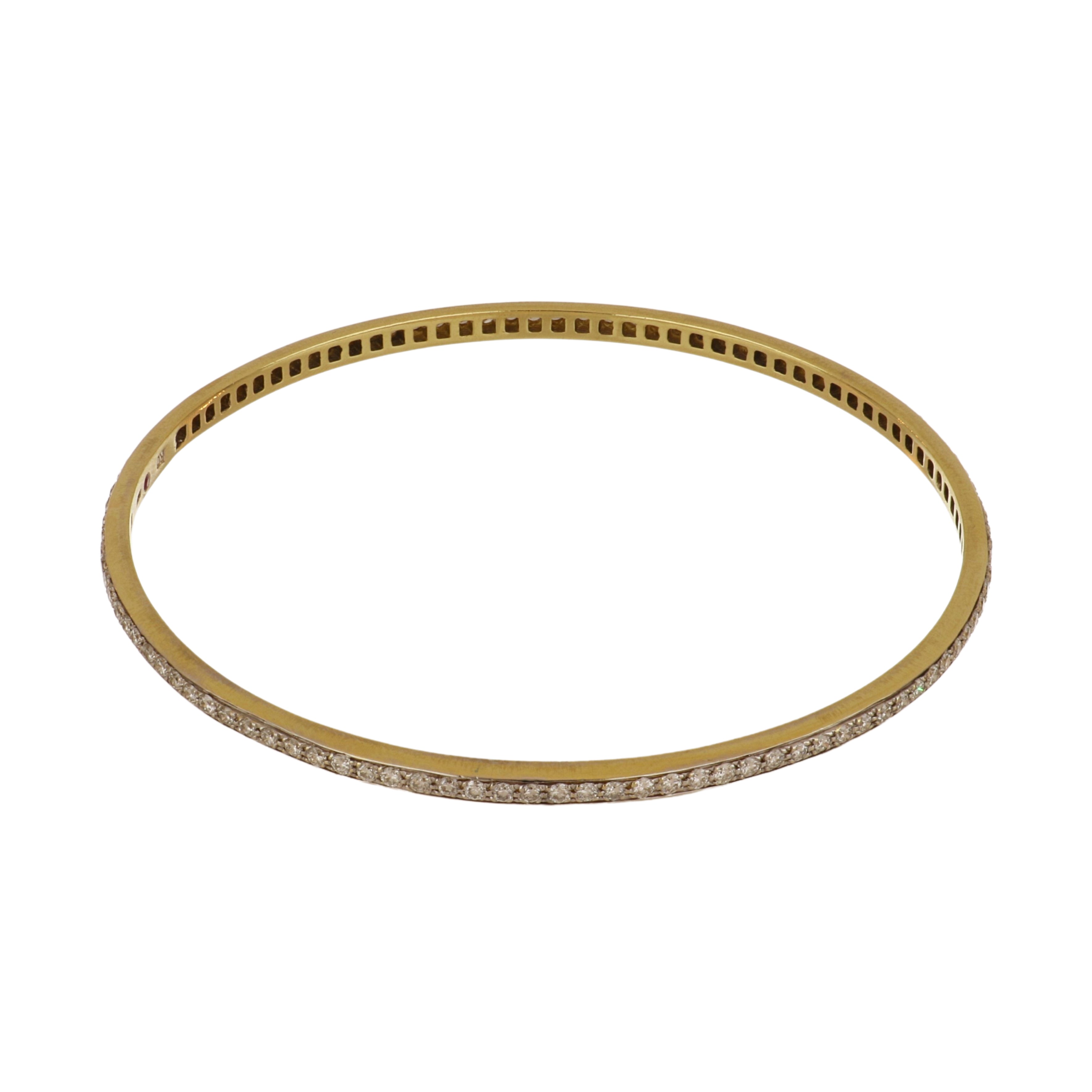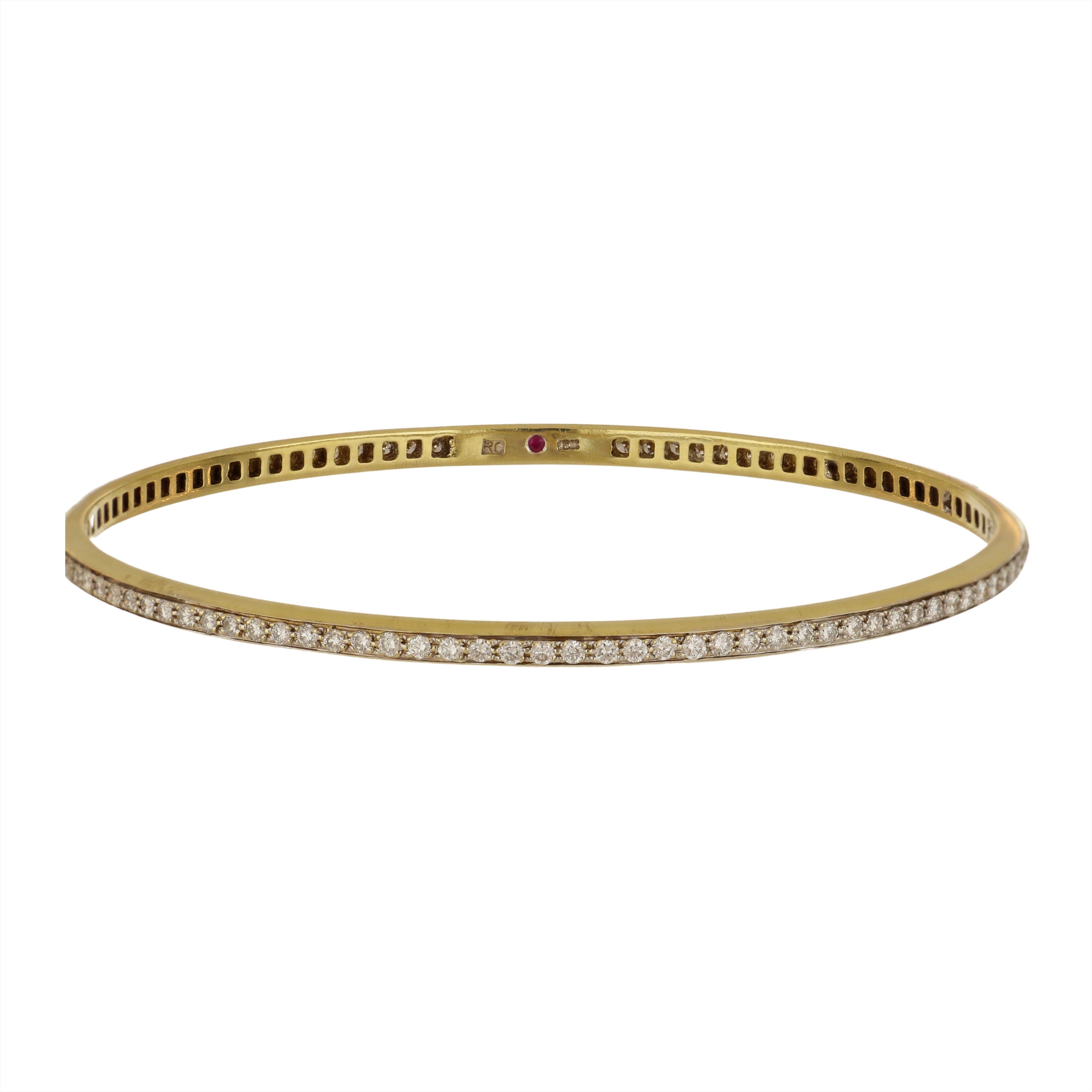 An estate modern, Roberto Coin pave-set round brilliant-cut diamond bangle set in 18k yellow gold. Circa 2010.