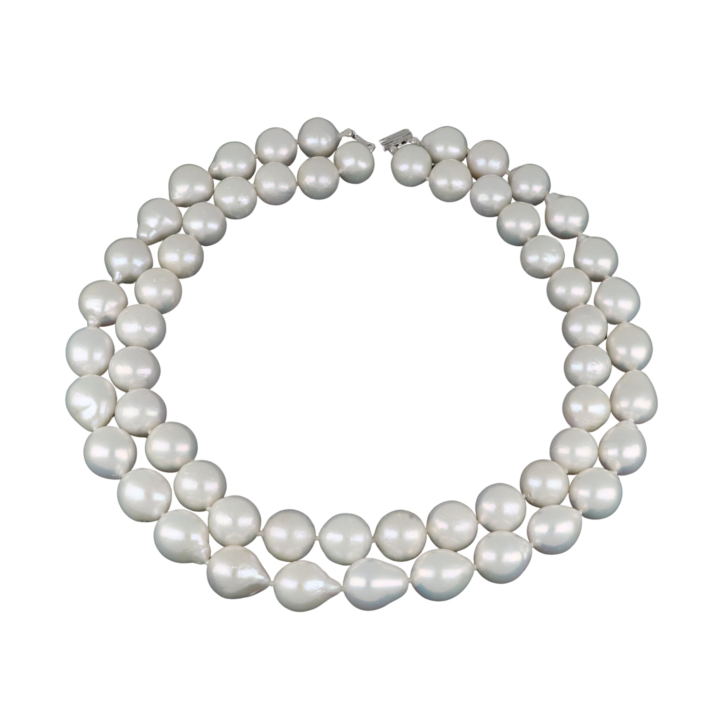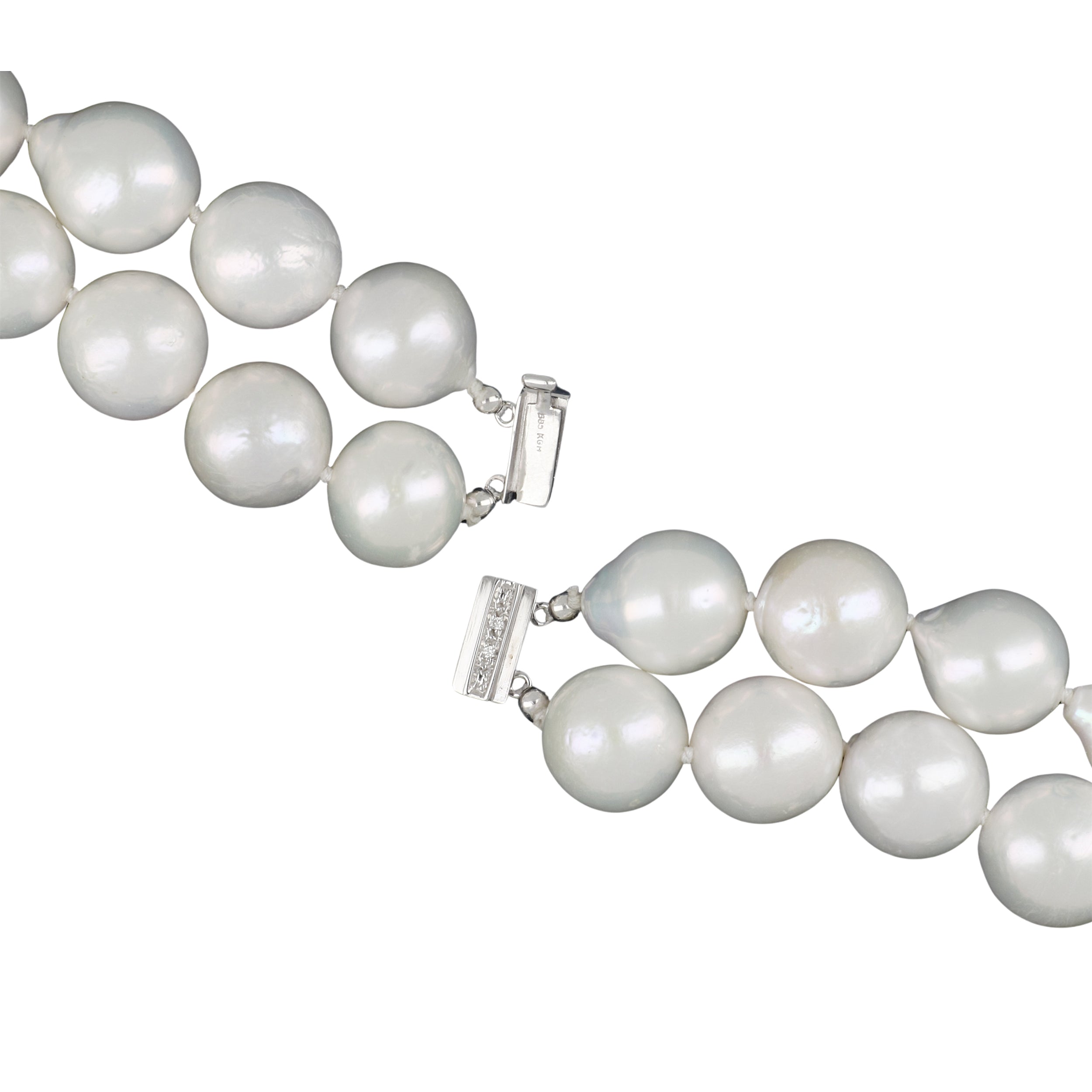 A double strand freshwater pearl necklace with a 14K white gold clasp with diamonds.