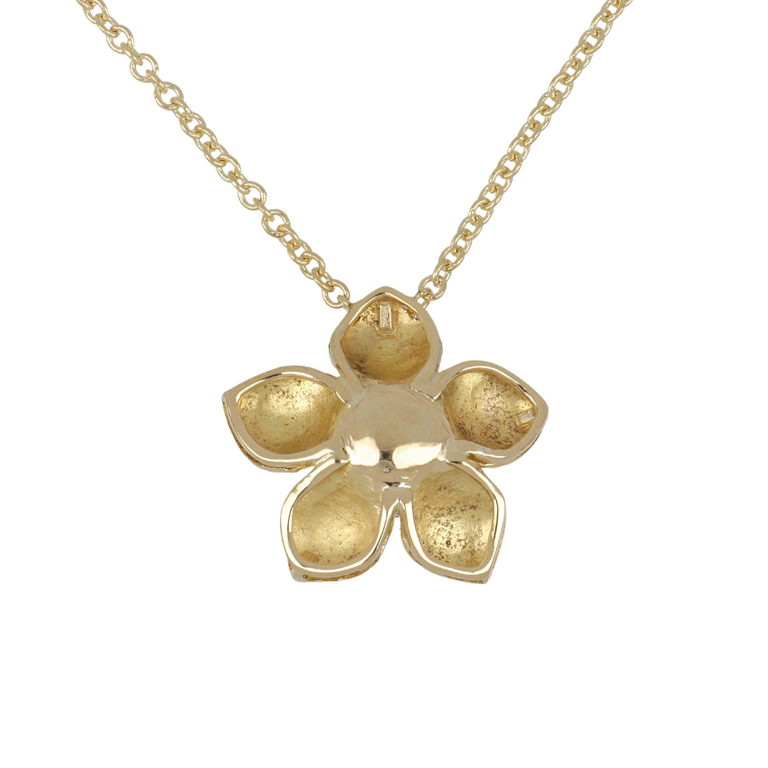 A textured flower station necklace set with round brilliant-cut diamonds, in 18K yellow and white gold.Tenenbaum Workshop CollectionDiamonds: 0.25 total carat weightG-H color, VS1-VS2 clarity
