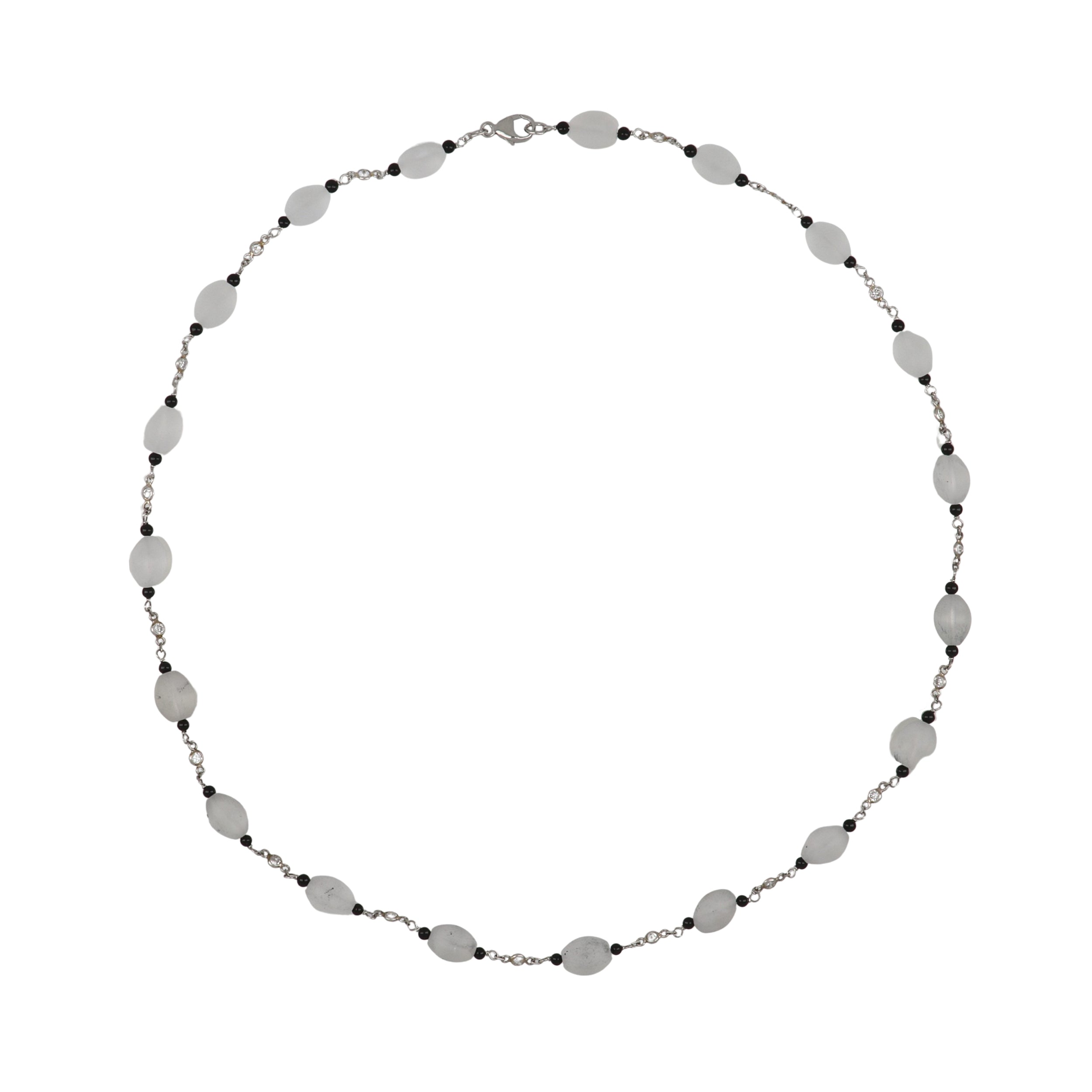 An estate bespoke, rock crystal, onyx and diamond bead necklace set in platinum.