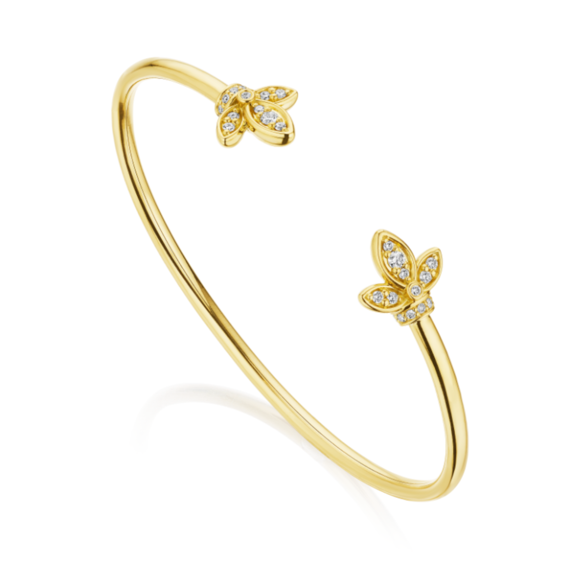 A Verragio Athena Toi et Moi diamond cuff bracelet in 18 karat yellow gold.