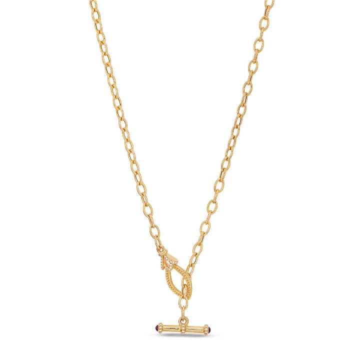 Verragio 18K Gold Diamond Link Necklace with Rhodolite Garnets