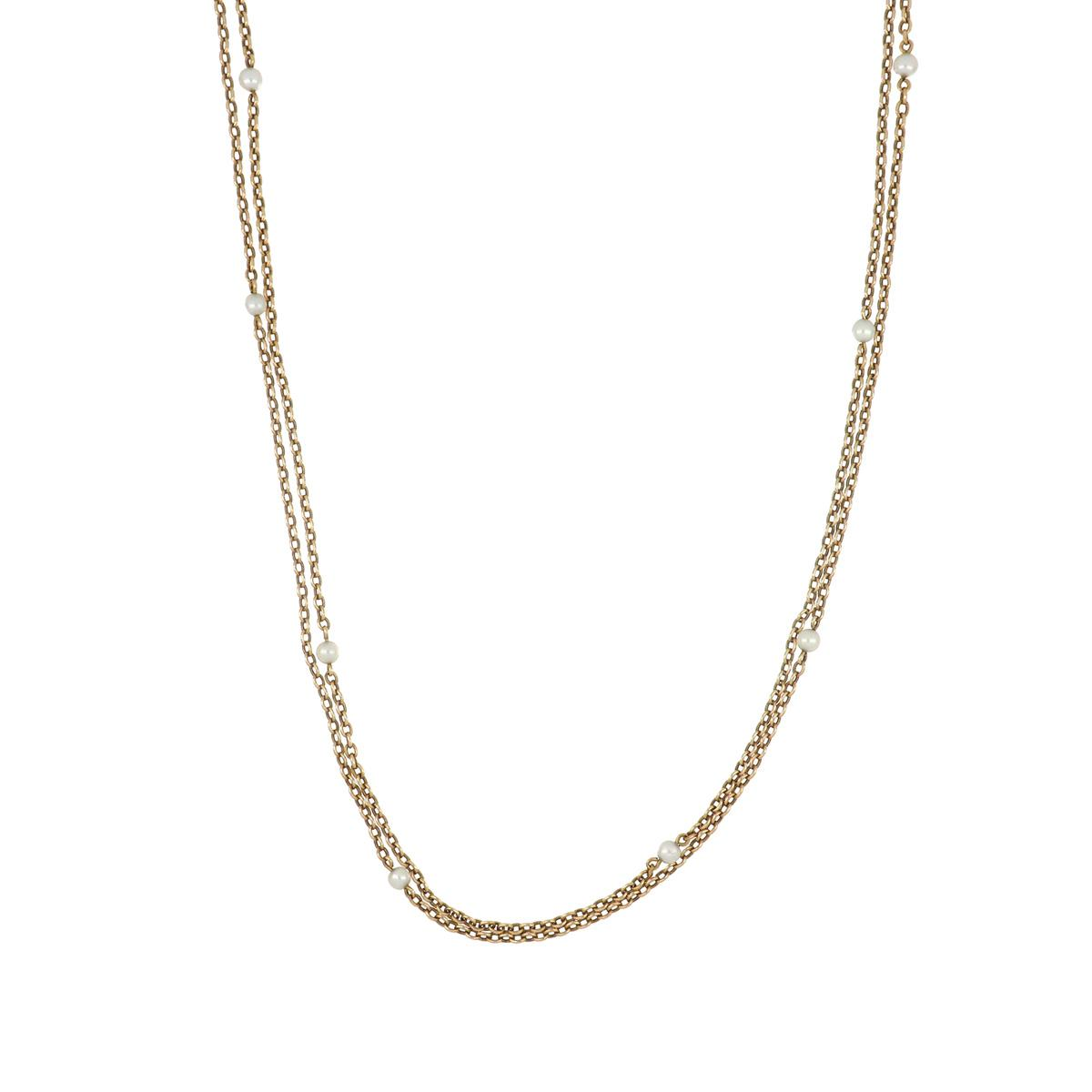 A French Victorian longuard chain necklace with pearls, set in 18K rose gold.