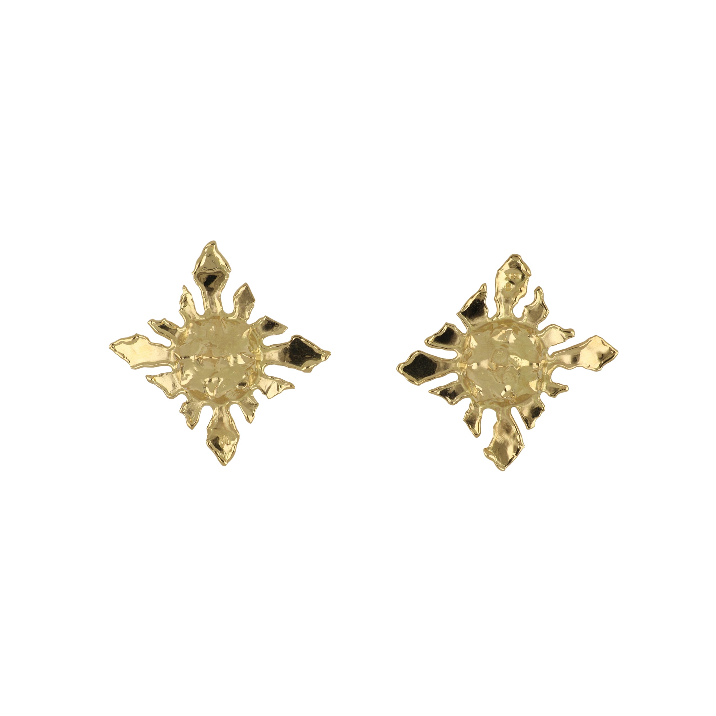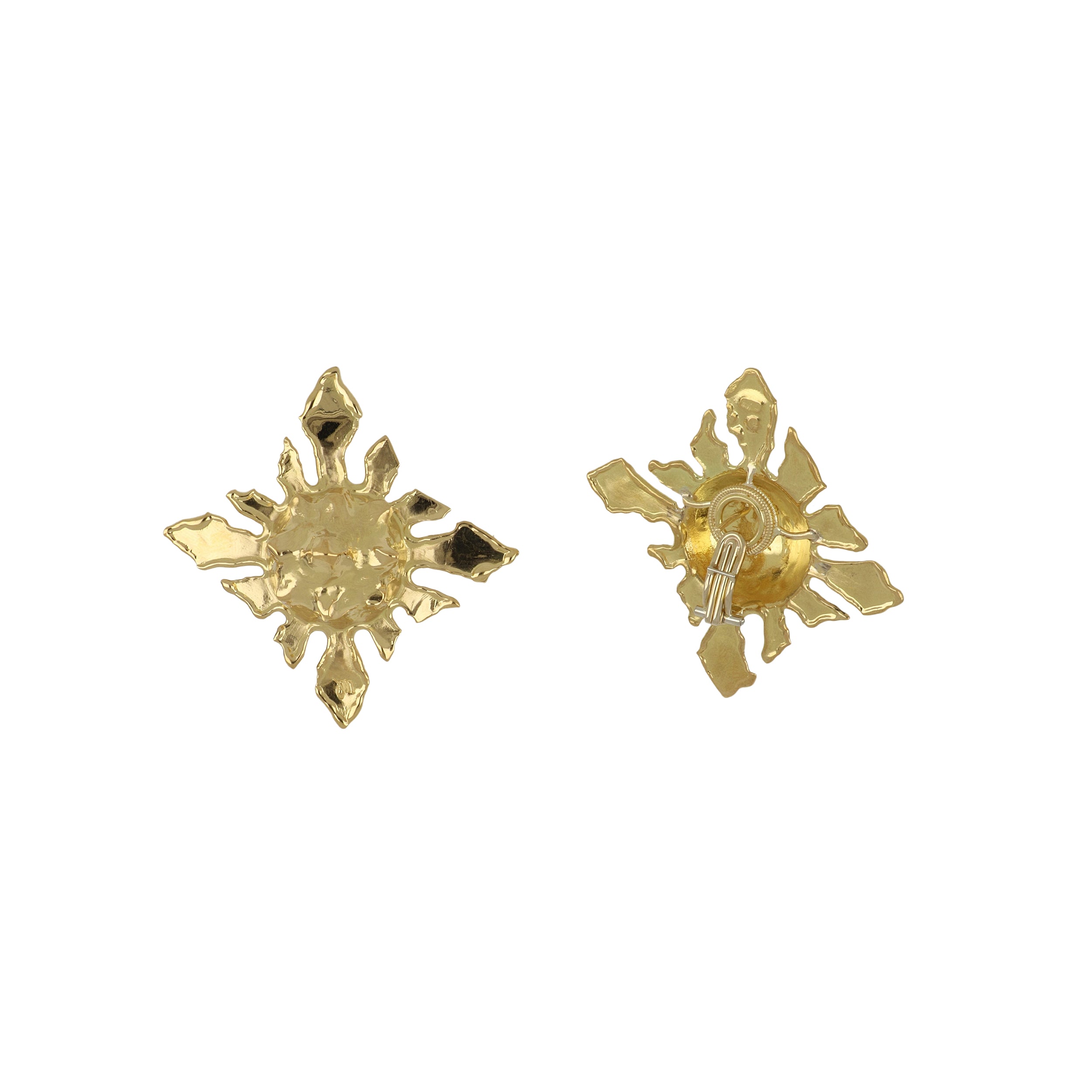A pair of vintage Jean Mahie pointed and textured clip earrings set in 22K yellow gold. Circa 1990.