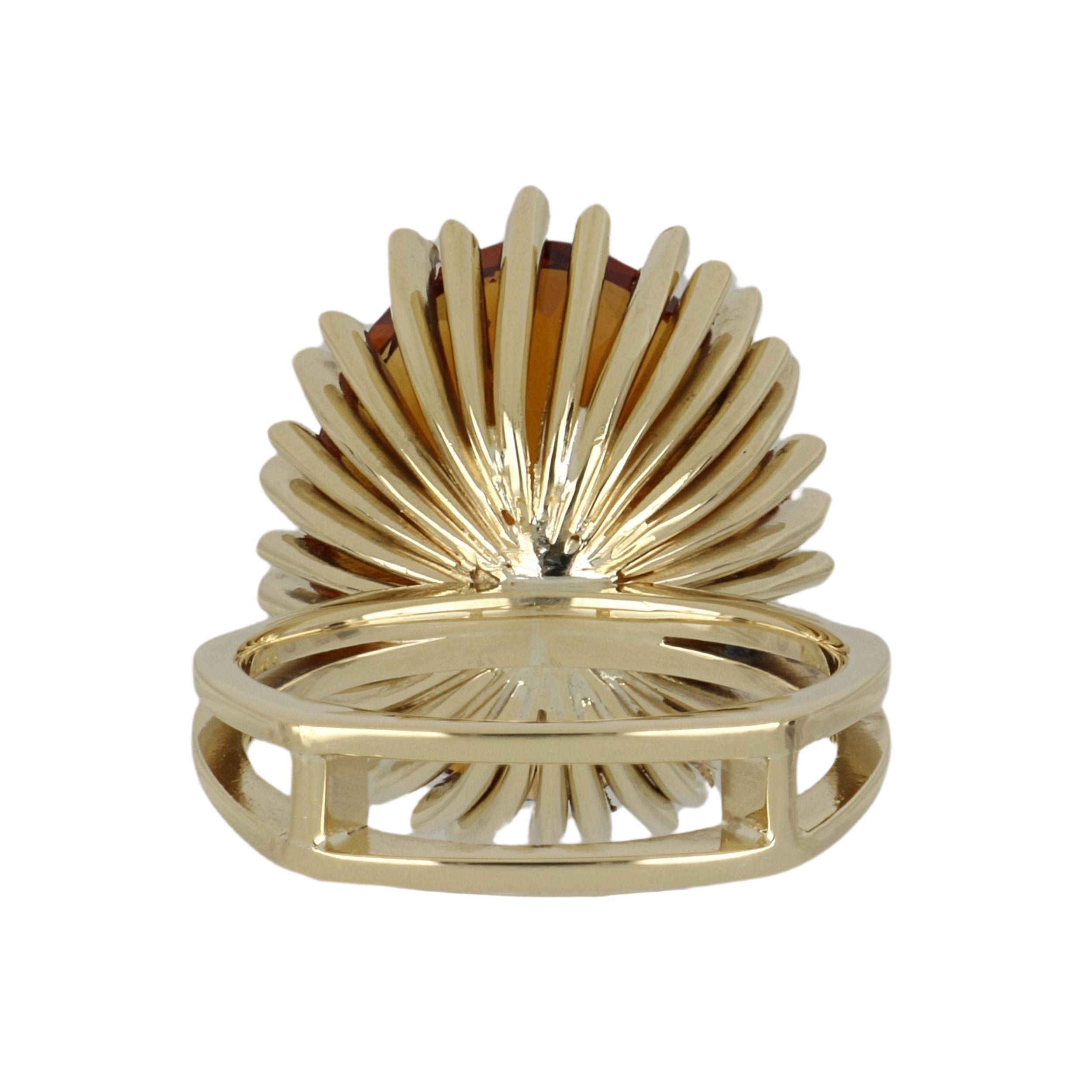 An estate vintage, oval-cut citrine cocktail ring set in a decorative multi prong mounting. Circa 1970.