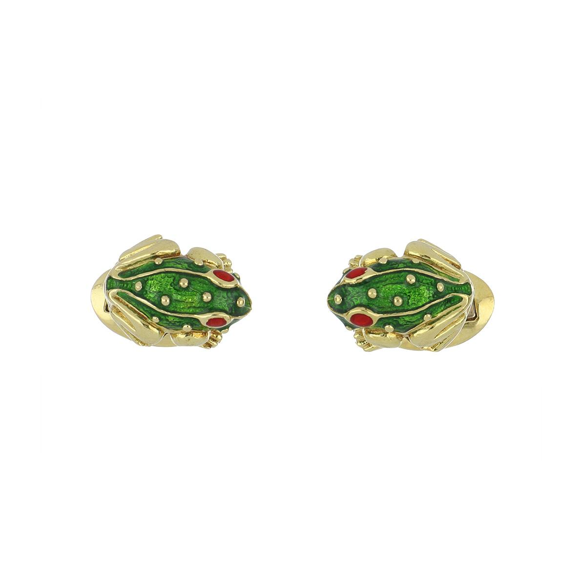 An estate pair of enameled frog cufflinks in 18k yellow gold.