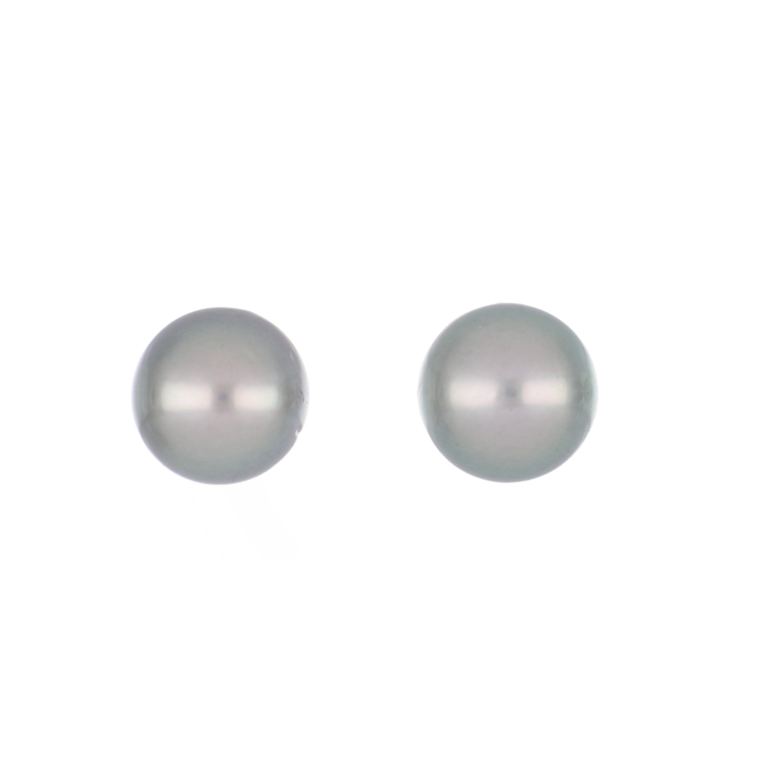A pair of 14 karat white gold tahitian pearl stud earrings.