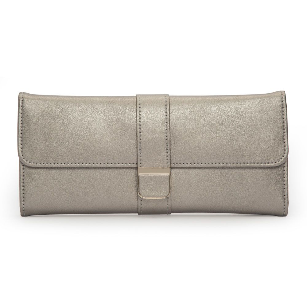 A WOLF Palermo top grain leather jewelry roll in pewter.